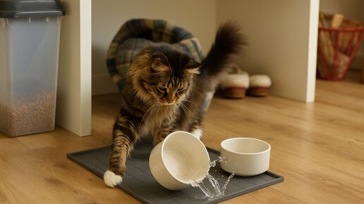 Владельцы кошек часто сталкиваются с загадочной ситуацией: аккуратно поставленная миска с водой оказывается перевёрнутой, а пол — в луже. На первый взгляд кажется, что питомец просто балуется. Однако такое поведение имеет глубокие природные, физиологические и психологические причины. В этой статье я подробно объясню, почему кошка может переворачивать миску с водой, и предложу эффективные решения, которые помогут справиться с этой проблемой. Чтобы понять, почему кошка опрокидывает миску с водой, стоит вспомнить о её диких предках...