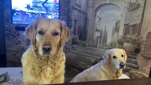 Золотистый ретривер негодует: почему котята спят на его лежанке?!