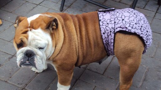 Как одеть подгузник на английского бульдога, чтобы он не спадал.