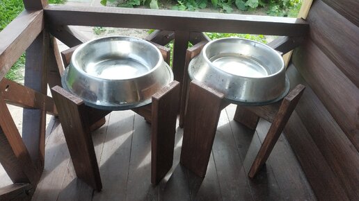 Домашний питомец растет, и есть из миски, стоящей на полу, уже не удобно. Решено сделать подставки для более удобного кормления.