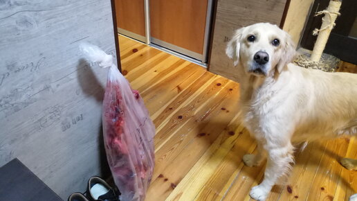 Рацион нашей собаки. Пикальное мясо и - опять Маня со своим хвостом.
