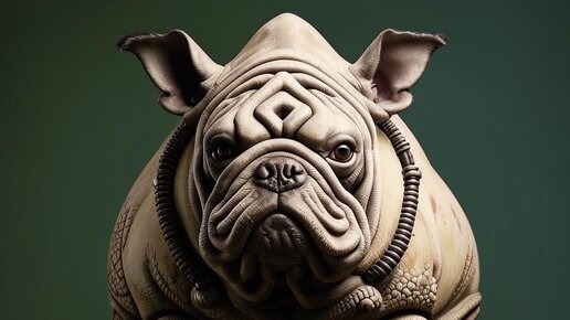 Помесь бульдога с носорогом - ещё опыты с нейросеткой Kandinsky by SberAI