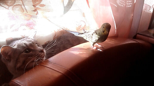 попугай решил поговорить с котом. говорящий попугай. симпатичный кот