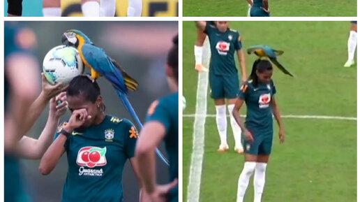 Забавный на первый взгляд случай произошел в ходе тренировки женской сборной Бразилии по футболу. Во время двусторонней игры на голову одной из девушек сел крупный попугай ара. Но инцидент забавен только на первый взгляд. На самом деле такой попугай может нанести весьма болезненный удар. В связи с этим матч был остановлен, а футболистка не пыталась спугнуть птицу самостоятельно...