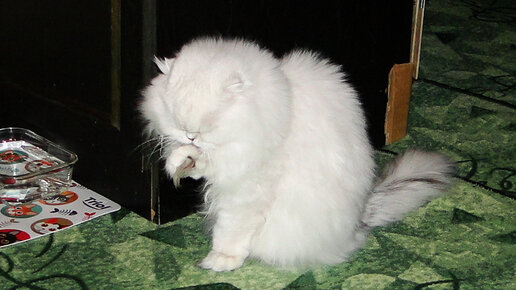 Продолжаю серию фотоподборок жителей нашего питомника. Это Элвис - старший сынок Каси, из самого первого помета. Очень поход на Касю, но более мужской вариант. Хотя и за кошечку его вполне принимают. Белый кот на белом фоне - классика! Белое пушистое облако))) А вспышка проявила кота и зажгла фонарики-глаза))) Очень чистоплотный котик))) Очень спокойный, добродушный котик, абсолютно не конфликтный, всем всегда уступает. И чашку свою уступит более наглым собратьям...