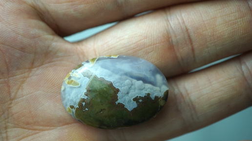 Просвечивающийся или полупрозрачный халцедон иногда даёт рассмотреть как он срастается с породой, давая интересную пейзажную картину. Неровная граница контакта и чередования минерала с породой создают впечатление замёрзшей лужи с речной галькой. Возможно из такого получится интересный кабошон, а может не получится. Камень легко может расколоться по границе, вот и проверим. Для начала с помощью трафарета и маркера сделаем разметку и без спешки, аккуратно обточим камень до нужного профиля. Для удобства...