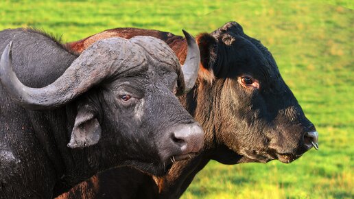 Одомашненные животные отличаются от диких по многим параметрам. Но буйвол из Африки рядом с привычным нам быком смотрится как существо из параллельного мира. Хотя почему же «как?» Они действительно живут в разных мирах. Домашний бык разбросал свои «семена» по всему миру. Где только не встречается полорогое создание! Разве что до Арктики не добрался. А так свои варианты есть везде: в Шотландии — айрширская порода, в Англии — герефордская, в России — холмогорская. А вот буйвол раньше проживал на всей территории Африки вплоть до Сахары...