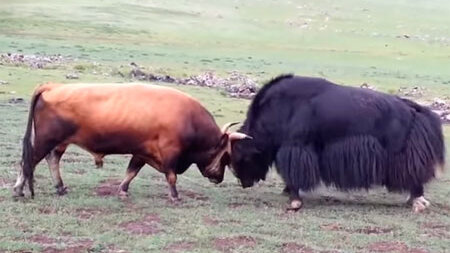 Самцы крупных копытных - это, как правило, мощные звери и мощь эта им нужна для вполне конкретных задач, а именно для битв друг с другом за обладание самками. Самцы таких животных как буйволы,зубры,бизоны,яки - это довольно агрессивные звери. Наверное, по этому крупных диких быков и не осталось в тех местах где живут люди. Последний дикий европейский тур(предок наших коров) был убит примерно 400 лет назад. Туры были похожи на современных испанских быков,только были гораздо выше в плечах и тяжелее...