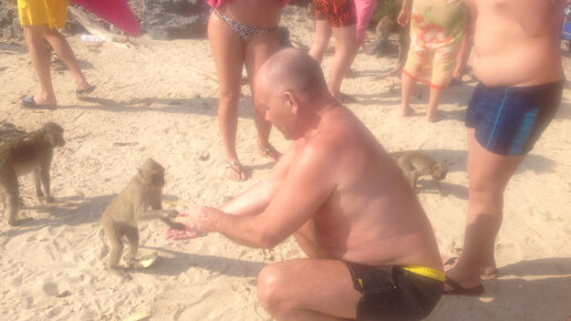 В феврале мы отдыхали в Таиланде. В городе Паттайя есть туры на остров обезьян, что мы купили. Один из ближайших - остров Обезьян находится в 30 километрах от города. В южном направлении Сиамского залива. Мы остановили свой выбор на экскурсии на остров Пед или Линк ( по вьетнамски), продолжительность её с 7 час утра до 17 час, обед на судне и напитки, безопасность гарантирована, все были в жилетах. Условия на судне нас удовлетворяли, 30 минут и мы на острове. Издалека уже видны были обитатели, приматы уже устремились в заплыв, видимо так они встречают туристов, их ждёт еда...