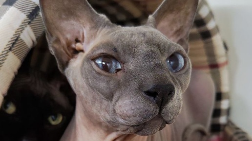 У людей обстоятельства... Новички прошлой недели - семейная пара сфинксов Кекс и Люся. Ничего нового, как в сказке Репка: жили кошки дома, у хозяев родился ребенок, у ребенка аллергия, кошки - в приют... Кекс - серо-лиловый с голубыми глазами, ласковый, но немного пугливый кот, кастрат, в апреле будет 4 года - это со слов хозяина. Люся - черного цвета, характерная, но очень общительная и контактная, ещё не стерильная, возраст примерно такой же, как у Кекса...