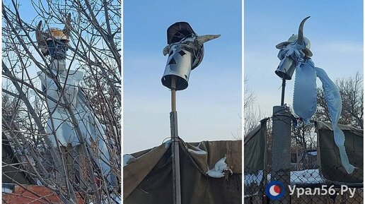 Житель Ащебутака Домбаровского района Оренбургской области организовал «приют» для собак и украсил его черепами быков в касках. Со стороны конструкция напоминает усыпальницу фараона или хижину из фильма ужасов. Фото поделились с Урал56.Ру местные жители. Забор жителя Ащебутака. Источник фото: местные жители Привлекает внимание и надпись на заборе. Ранее член ОНФ, юрист Дмитрий Болдырев поделился в своем ТГ-канале мнением на этот счет. Судя по надписям на заборе, возможно у хозяина имеются отклонения в психики и он противопоставил себя обществу...