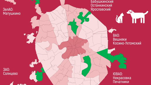 Районы Москвы, в которых расположены приюты для содержания безнадзорных животных 🐶