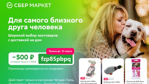 СберМаркет — Скидка 500 руб.в разделе Зоотоваров от 1 500 руб.!