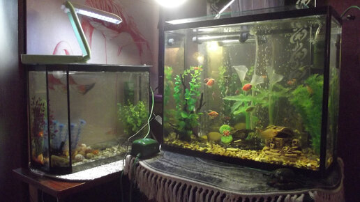 Но, тем не менее, рыбки здоровы, растут, только внимания требуют значительно больше, чем было бы в более большом аквариуме.