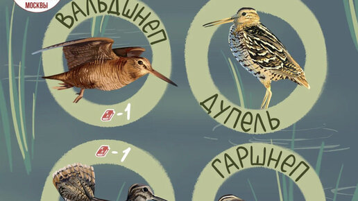 Птицы с удлинённым клювом: бекас, вальдшнеп, гаршнеп и дупель