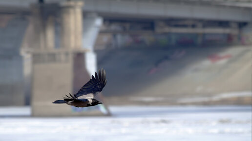 Серая ворона (лат. Corvus cornix) — вид птиц из рода воронов, семейства врановые, отряда воробьинообразные. Туловище у неё серого цвета, от того название, а вот голова, крылья и хвост чёрные со металлическим блеском. В среднем длина птицы около полуметра, весят вороны от 460 до 735 граммов, обладая размахом крыльев до одного метра. Ворона несколько крупнее грача, у неё более высокий и крепкий, изогнутый по коньку клюв. В полёте, кроме окраски, от грача отличается более широкими и тупыми крыльями и слегка наклонённым вниз клювом...