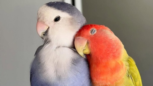 На фотографиях — неразлучники. Это маленькие попугаи, которые славятся своей исключительной привязанностью к партнеру.