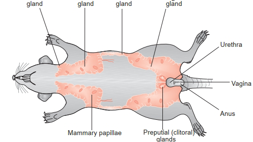 Ткань молочной железы у крыс обширна, она простирается от шеи и локтя до паховой области (рис...