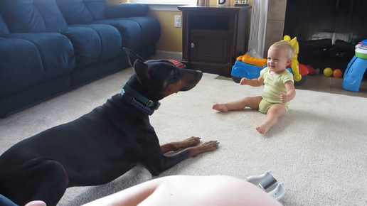 Доберман по имени Лили стояла рядом с крошечным ребенком. Родители хотели проверить, как будет вести себя питомец во время совместных игр с самым молодым членом семьи. Реакция огромного четвероногого поразила их до глубины души! Их игра была снята и опубликована в интернете...