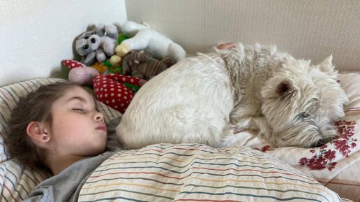 Ребенок спит с собакой или кошкой. Стоит ли родителям беспокоиться?