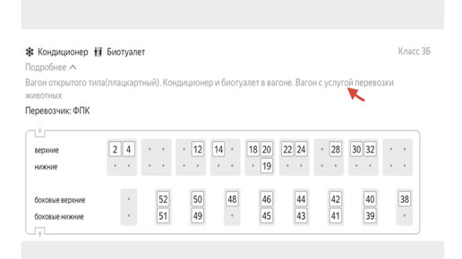 Если вы покупаете билет онлайн, такие места отмечены значком в виде лапки. Чтобы увидеть эти вагоны на сайте РЖД, при поиске билетов нажмите на карточку поезда и перейдите к выбору типа вагона. При покупке билета в кассах вокзала уточняйте у кассиров, предназначен ли вагон для животных.