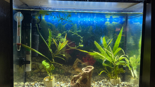 Изначально я планировала, что Гермиона будет рожать в общем аквариуме. Имеется в виду не рожать в прямом смысле, так как у нее во рту уже мальки, а выпускать их в люди. Если съедят их мои крокодилы — ну и ладно, значит не судьба. Но потом мне стало так жалко бедную Гермионочку, которая таскает мальков во рту уже больше недели, ничего не ест, бережет своих деток, что я решила купить для этой цели небольшой аквариум. Взяла 25-литровый, он как раз поместился у меня на рабочем столе. Теперь во время...