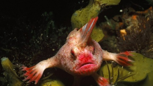 1. Розовая рыба с руками Она использует свои плавники, чтобы ходить, а не плавать вдоль дна океана. Только четыре экземпляра этой скользкой розовой рыбы с руками в 10 сантиметров были найдены недалеко от острова Хобарт на австралийском острове Тасмания. Из-за того, что с 1999 года никто не видел розовой рыбы с руками, ученым потребовались годы, чтобы идентифицировать ее как новый вид. 14 известных видов рыб с руками находятся только на мелководье в юго-восточной Австралии. Эти рыбы плохо изучены, и мало что известно об их биологии или поведении...