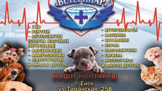 В клинике 💎 «Ветеринар» Вы можете пройти полный спектр диагностических услуг благодаря современному оборудованию (рентген, аппарат УЗИ, анализаторы крови и мочи). Это значительно ускорит процесс постановки правильного диагноза и назначения лечения Вашему питомцу! 🐈 📍 Ейск, ул...