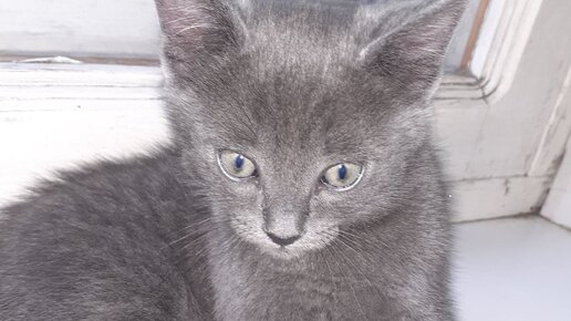 Великолепный метис русской голубой и обычного дворового кота котенок Мишка!