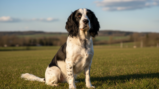 Русский спаниель на прогулке зимой