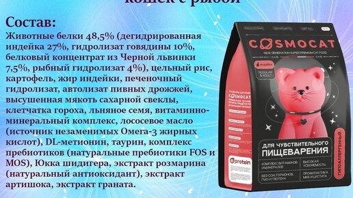 Быстрый обзор сухого корма Cosmocat для стерилизованных кошек с рыбой