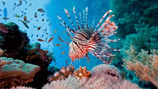Описание: Длина тела рыбы около 30 см, оно расписано яркими светлыми полосами. Это хищные рыбы. Они могут легко проглатывать рыб длиной до двух третей собственной. Окраска тела красная с многочисленными светлыми полосками; грудные плавники большие (отсюда название), хотя летать крылатка не может. Масса тела достигает 1 кг. Крылатка имеет длинные ленты спинных и грудных плавников — в этих роскошных веерообразных плавниках таятся острые ядовитые иглы. Укол колючками этой рыбы очень болезнен. За резкой...
