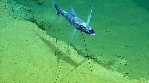 Привет всем кто будет читать мою новую статью. Сегодня я расскажу про рыбу-треногу. Рыба-тренога живет на глубине от 800 до 3500 метров. Обитает на дне Атлантического, Индийского и Тихого океанов, в умеренном и тропическом климате. Имеет длину от 30 до 35 см, но иногда встречаются и до 40 см. У нее из грудных плавников и хвоста растут лучи, на которые она опирается, находясь на дне. Длина лучей достигает 1 м. Тело у нее тонкое и длинное, окрашено в чёрный или тёмно-синий. Боковая линия тела хорошо различима...