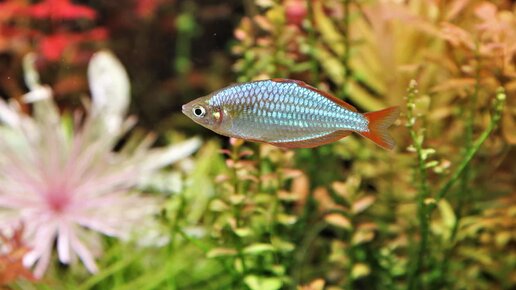 Неоновая радужница — красивая миндалевидная рыба с переливающимся голубым блеском, который мерцает на свету. Этот выносливый вид довольно активен и имеет мягкий нрав, который хорошо сочетается со многими мирными и полуагрессивными товарищами по аквариуму. Узнайте, как ухаживать за этой удобной для новичков рыбкой. Что за рыба неоновая радужница? Melanotaenia praecox — 8-сантиметровая рыбка, обитающая в ручьях и притоках тропических лесов Новой Гвинеи. У самцов блестящее голубое тело с красно-оранжевыми плавниками, а у самок серебристое тело с желтыми плавниками...
