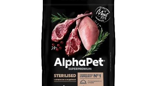 Состав корма AlphaPet Superpremium Sterilised с ягненком и индейкой.