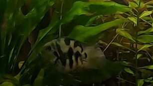Одна из самых популярных цихлид среди аквариумистов. При этом выведена искусственно от скрещивания самцов цихлид-Чернополосых и самок Красного попугая. Размер около 6 см. Окрас: сочетанием черных полос и синего тела. Имеет круглое тело и рот, который выступает вперед. Считается миролюбивой рыбкой. Проявляет агрессию только во время нереста и охраны потомства. Имеет особенность пугаться, попадая в новую среду. Не редки случаи, когда попугаи прятались в укрытиях по нескольку дней. Есть мнение, что...