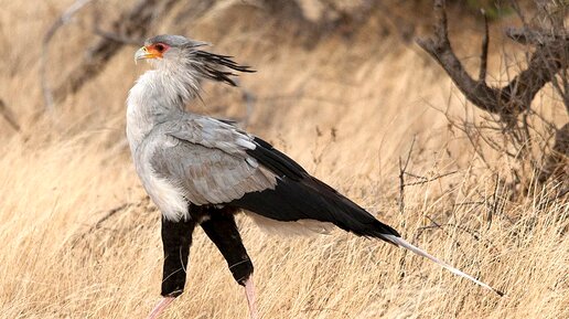 По африканской саванне с важным видом вышагивает на своих длинных ногах грациозная птица. Её светло-серое оперенье, переходящее в более темный цвет, на крыльях и хвосте напоминает нарядный фрак, а на ногах будто бы надеты черные короткие штаны до колена. Примерно так в 18 веке одевались европейские клерки. Длинные черные перья на голове птицы выглядят как ручки, которые носили служащие за своим ухом. Это сходство заметил зоолог из Франции Иоганн Германн. В 1783 году он впервые описал птицу и дал ей название...