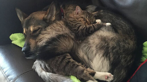Щенок Хаски сам выбрал друга, котёнка из приюта.