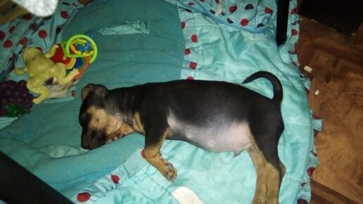 Щенок переел и стал попрошайничать. Пришлось его отучать