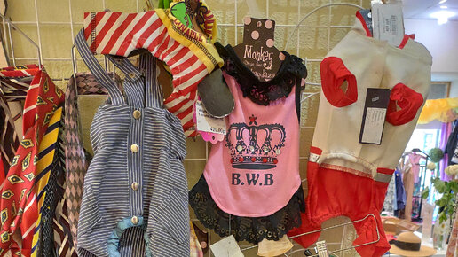 Всем привет! Сегодня для вас будет очень забавная и необычная статья. Такого ещё не было это точно. В одном из секонд хендов я нашла костюмчики для домашних питомцев. Ну что, давайте смотреть! Вот так выглядит стенд с одеждой. Сейчас каждый из вариантов рассмотрим ближе. Вот такая милая кофточка для маленькой собачки. Возможно для чихуа, я не сильно разбираюсь. Я как мама девочки очень трепетно отношусь к платьям, но тут как бы для собаки. Полосатенький из хорошей плотной ткани. На мальчика. До сих пор не верю, что я делаю обзор одежды для собак...