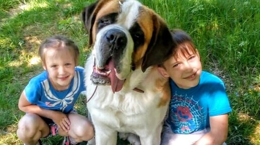 Сенбернар и дети