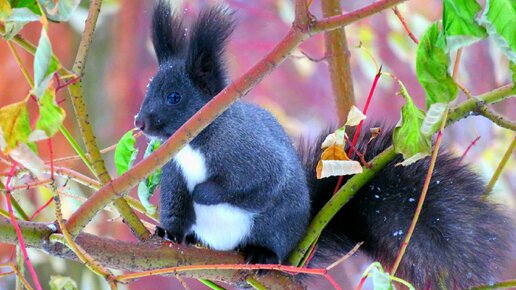 Притаилась и увидела редкую чёрную белку: очаровашка лузгает семечки (сняла фото и видео)