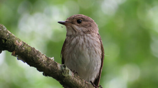 Серая мухоловка вряд ли удостоилась где-нибудь упоминания, как имеющая какие-нибудь выдающиеся признаки птица. Внешне самца и самку различить очень сложно. Эпитет «серые», как нельзя лучше подходит к невзрачному оперению пары мухоловок. Обнаруживая серых мухоловок на гнездовом участке всегда поздно, во время насиживания или кормления птенцов, мне ни разу не удавалось услышать её пения. Но, по словам очевидцев – песня такая же неприметная, как сама птица. Негромкое щебетание серой мухоловки не может стать в ряд даже с простой песней мухоловки-пеструшки...