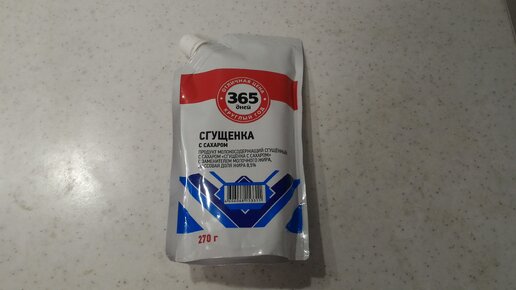 В молочном отделе гипермаркета Лента попалась на глаза достаточно бюджетная сгущенка марки 365 дней. Но это не настоящая сгущенка. На упаковке написано "продукт молокосодержащий сгущенный с сахаром "сгущенка с сахаром" с заменителем молочного жира". Масса 270 грамм. Цена 24,8 рублей. Посмотрим из чего же изготовлена псевдосгущенка Состав Сахар (сахароза), сыворотка молочная сухая восстановленная, масло сливочное (из пастеризованных сливок), заменитель молочного жира (масла растительные рафинированные...