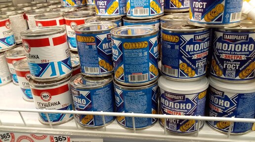 Молоко сгущенное с сахаром, а в разговорах и в быту - сгущенка, - это продукт, любимый и детьми, и взрослыми. Очень уж вкусное и сладкое лакомство находится внутри банки с привычной бело-голубой этикеткой. Я тоже сгущёночку уважаю, особенно с блинами или оладьями к чаю. Вот только купить настоящую в последнее время бывает сложно - много подделок появилось в магазинах. Да и ассортимент широкий - марок и названий столько, что глаза разбегаются. Вот навскидку сразу 3 разные банки с похожими этикетками, попавшиеся мне на глаза в супермаркетах...