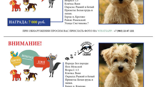 Объявления о пропаже кошки или собаки, как подготовить шаблон для печати?