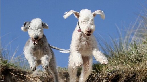 Породы отличаются крайне необычной внешностью и нежной на ощупь в мягких завитках шерстью. Интересно, что щенки их все рождаются черными ( у керри-блю) или черными и коричневыми (у бедлингтонов). «Перецветают» они в свой постоянный цвет к 2 годам.