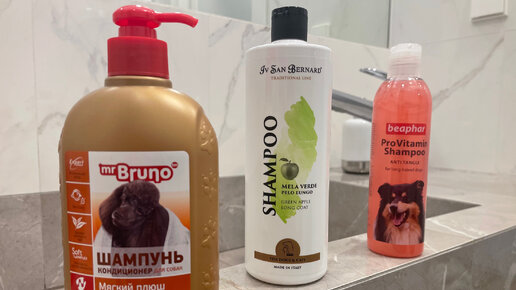 В предыдущей статье мы говорили о лайфхаках для купания длинношерстных пород собак. Важную роль в купание отводиться средствам для купания. Поэтому мы решили сделать обзор на шампуни для длинношерстных собак. Рассмотрим три шампуня, которые хорошо известны среди хозяев: 1. Mr.Bruno шампунь для собак №4 "Мягкий плюш" 350мл