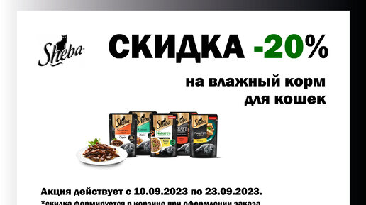 АКЦИЯ -20% СКИДКА НА ВЛАЖНЫЙ (ПАУЧИ) КОРМ ДЛЯ КОШЕК SHEBA