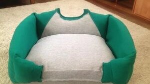 Тем, у кого есть кот или собака часто хочется сшить удобную лежанку для своего питомца. В магазинах часто такие товары дороги и не всегда подходят по размеру. Для того чтобы сделать уютную лежанку понадобятся: Толстовку лучше взять из прочной ткани, тогда лежанка прослужит долго. Зашиваем ворот и пришиваем рукава от подмышки к боковой стороне. Там, где был ворот, отступите такую же ширину рукава и прошейте нитками вдоль ткани. Набиваем рукава синтепоном, вкладываем в толстовку подушку и подшиваем края, чтобы она не выпала...